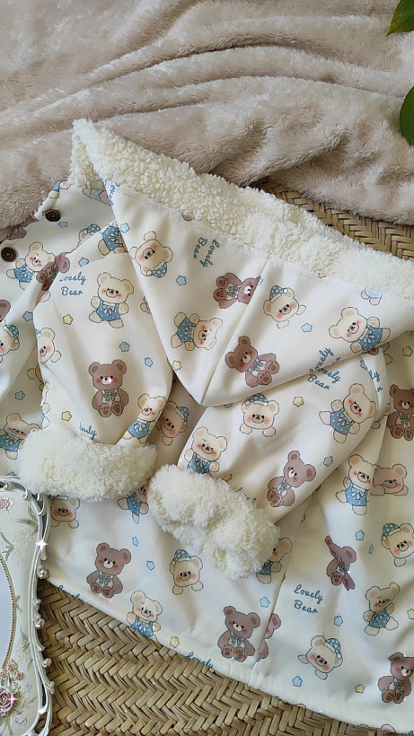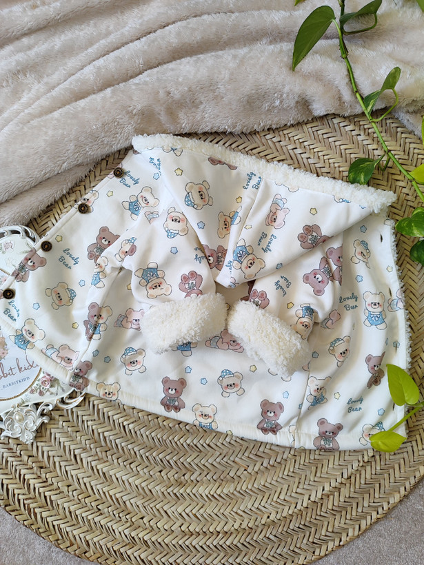 کاپشن بچگانه کاپشن تو خزدار طرح تدی مناسب ۹ ماه تا ۳ سال