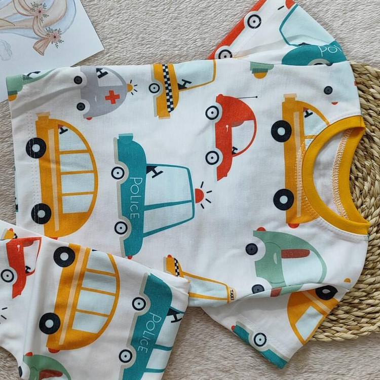 لباس راحتی لباس بچه گانه ست راحتی مناسب 1 تا 8 سال طرح ماشین رنگارنگ