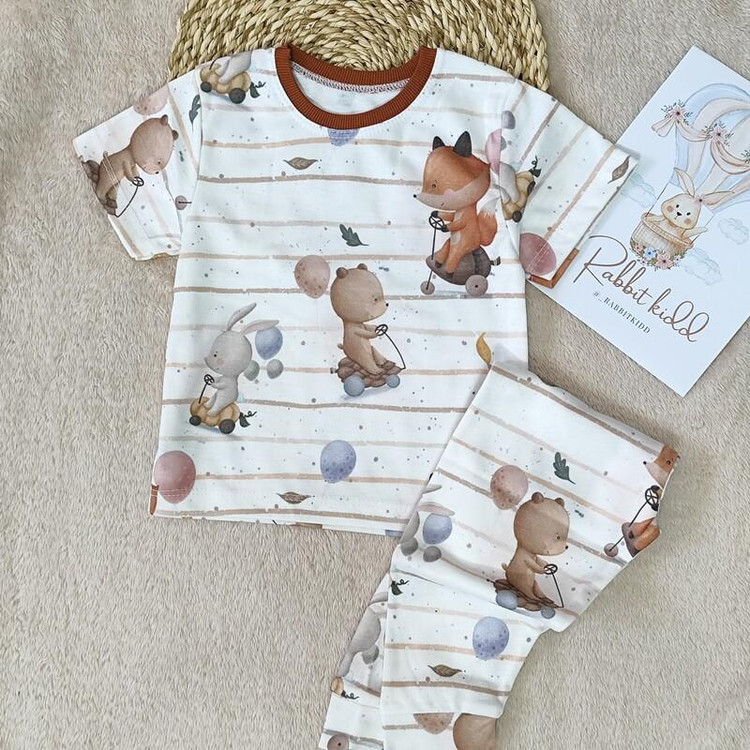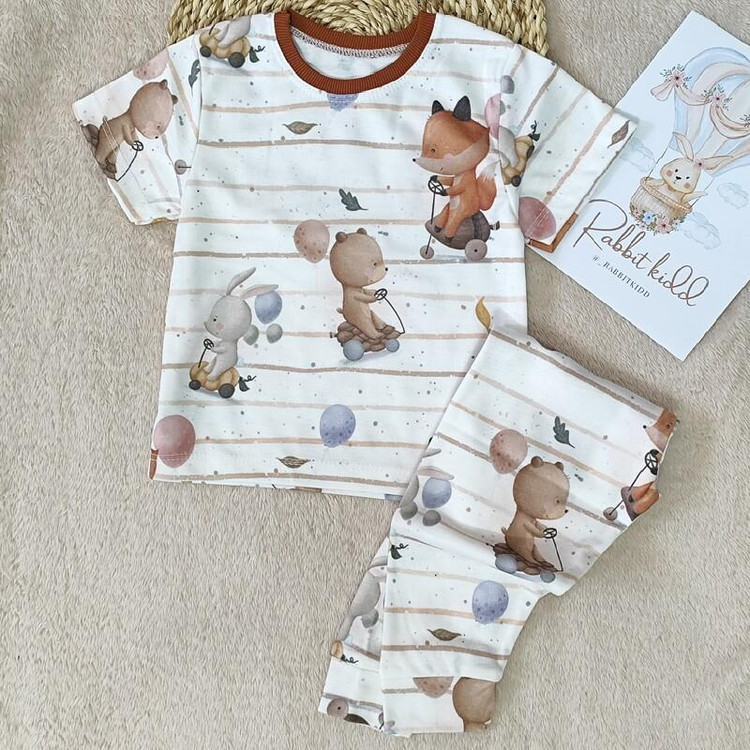 ست تیشرت و شلوار راحتی لباس بلوز شلوار بچگانه لباس ست کودک طرح روباه مناسب یک سال تا 9 سال