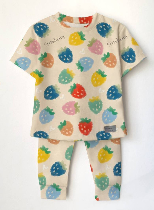 ست راحتی *تیشرت شلوارک* طرح توت فرنگی مناسب ۷ ماه تا ۹ سال کپی