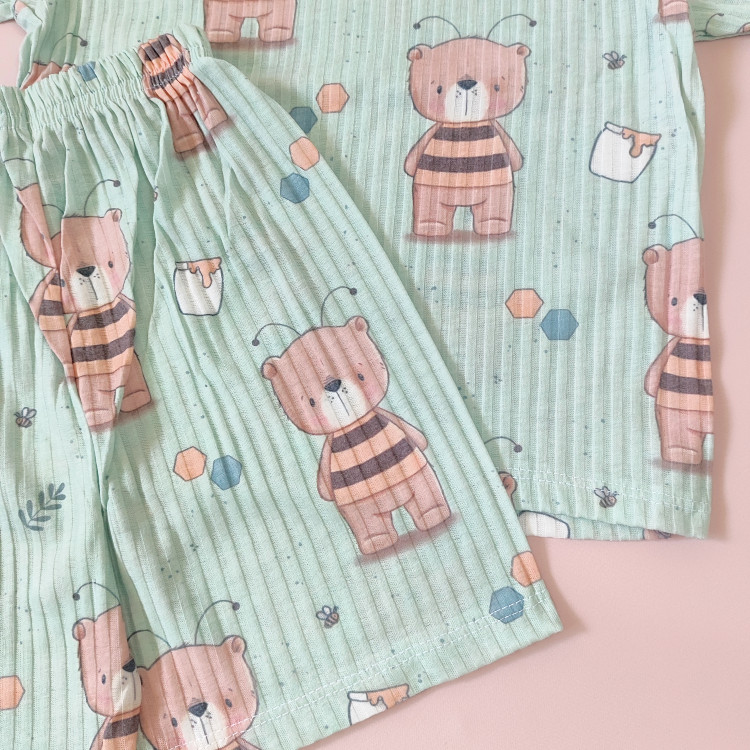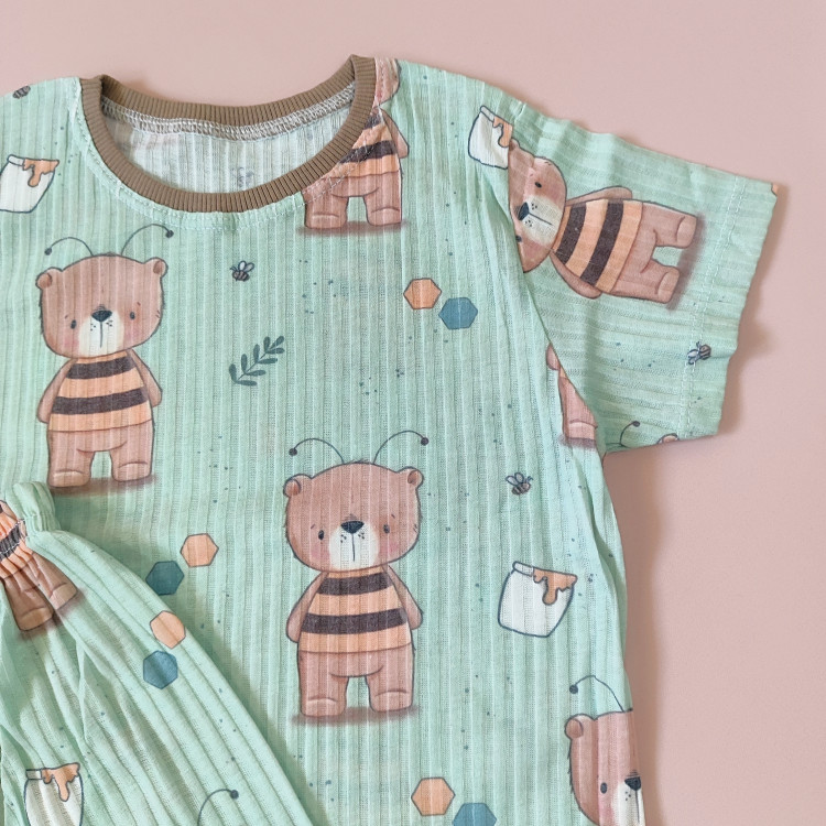 ست راحتی تیشرت شلوارک تدی زنبور شورت مناسب 1تا 9 سال