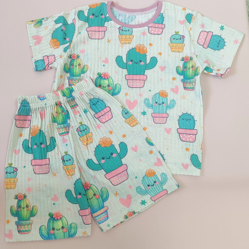 ست راحتی تیشرت شلوارک کاکتوس شورت مناسب 1تا 9 سال
